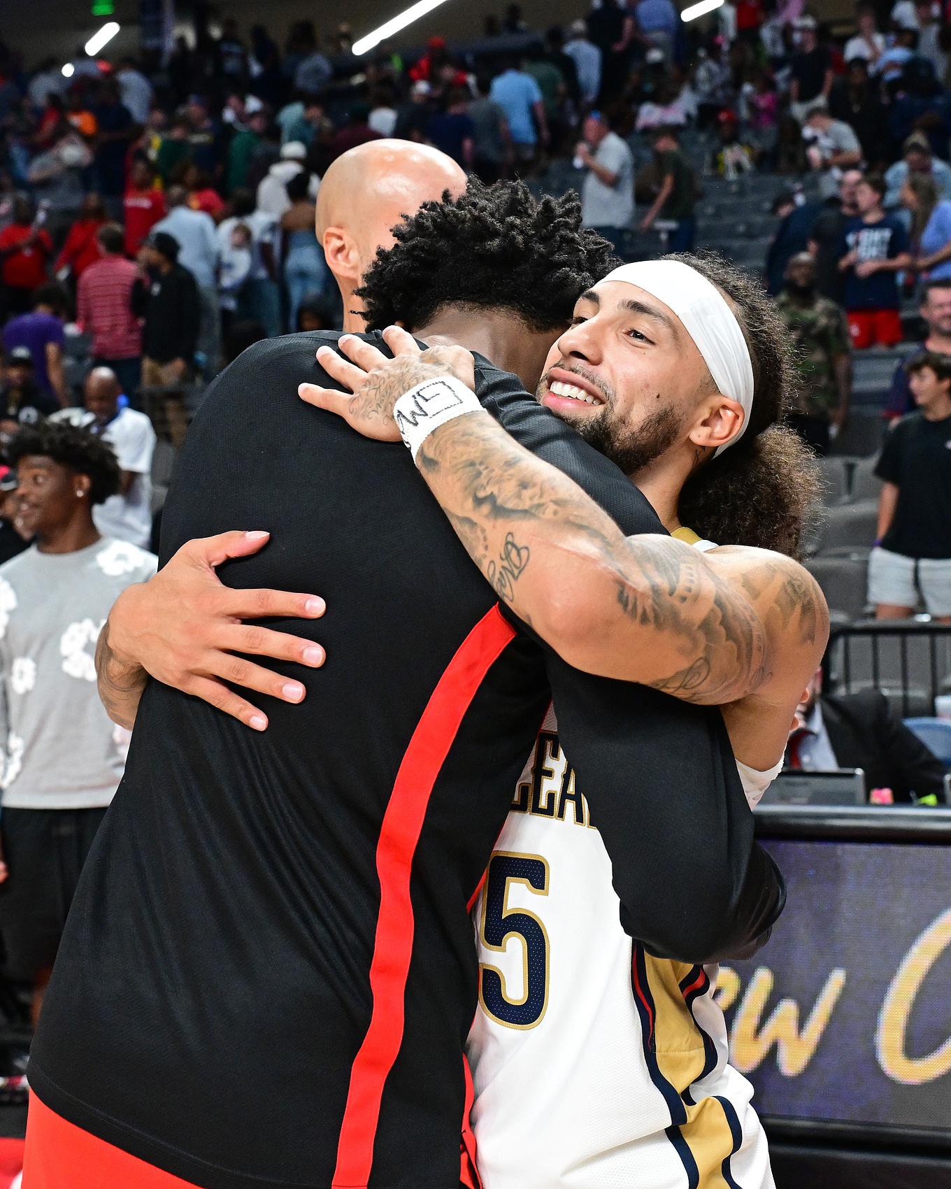 在本场比赛中,阿门-汤普森和阿尔瓦拉多因为卡位问题爆发了冲突,不过,他们两人在赛后拥抱,握手言和。