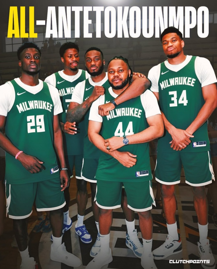 相关链接→美媒晒五人全是字母哥阵容:踢足球的大哥也来凑数了