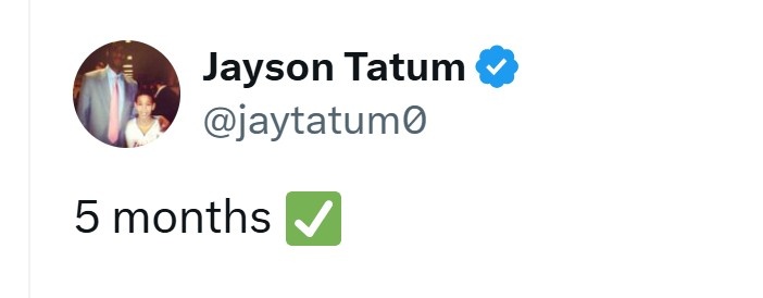 早日回归!塔图姆推特康复打卡:5个月了✅