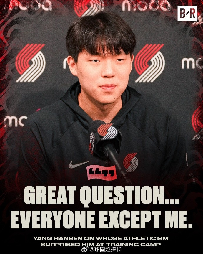 10月4日讯 媒体人球权赵探长转发了美媒制作杨瀚森言论的海报,并写道:杨瀚森讲过的话还蛮受关注,已经不止一条被美媒做成海报了,最新的一张是BR给出的。记者问他对训练营里哪名队友的天赋印象深刻,小杨说“除了我,都能跑能跳”