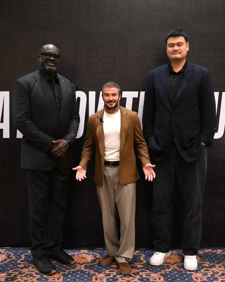 跨界联动!贝克汉姆晒与姚明&奥尼尔&成龙合影:见到了三位传奇