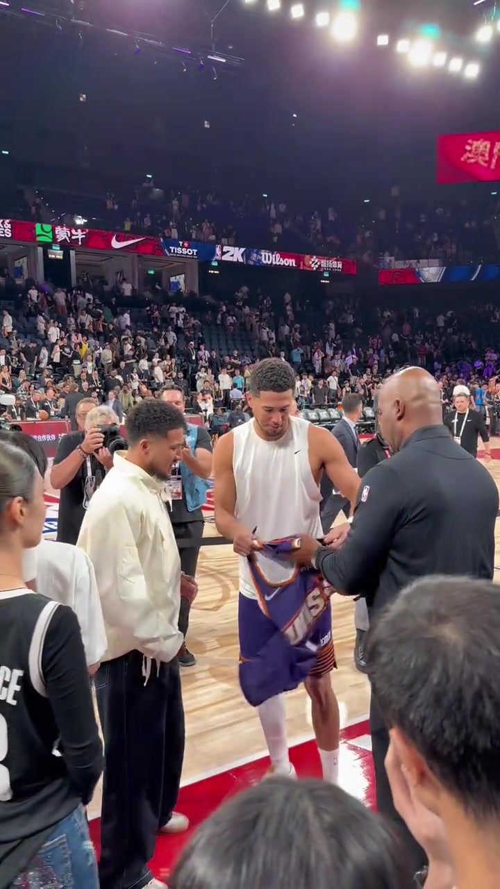 德文布克和中文布克!模仿布克网红获得布克签名球衣+拥抱合影
