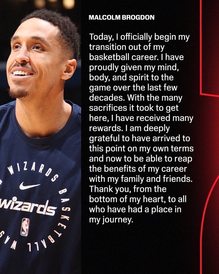 布罗格登上个月与尼克斯签下一份训练营合同,原本有希望进入球队的常规赛名单,但经过深思熟虑后于当地时间周三告知球队管理层退役决定。