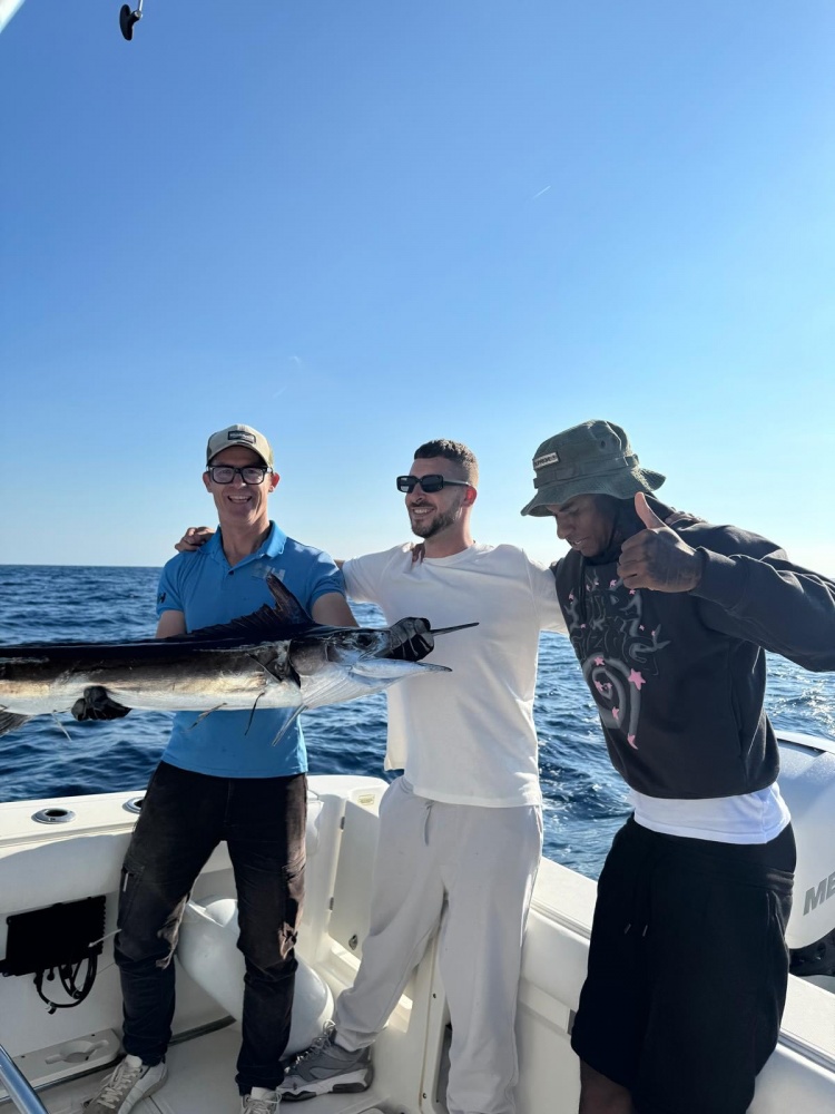 拉什福德社媒晒出海钓的照片,他拿着自己钓上的鱼,露出灿烂笑容。