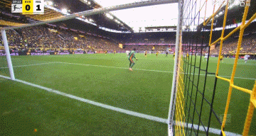 第23分钟,拜尔左侧底线外脚背挑传中路,吉拉西分球右侧,扬-库托推射,皮球边线后直入死角,多特扳平比分,1-1!↓