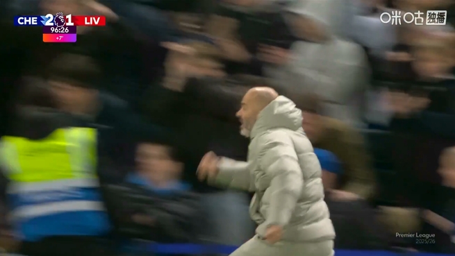 10月05日讯 英超焦点战,切尔西对阵利物浦。补时阶段,埃斯特旺绝杀,有黄牌在身马雷斯卡冲进场内疯狂庆祝,吃到第二张黄牌被罚下。