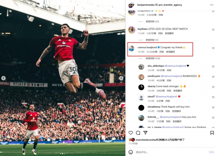 而正是被他挤掉位置离队的霍伊伦则在下方评论区送上祝福,霍伊伦写道:“恭喜你,我的朋友🙌