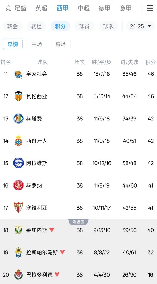 而在上赛季,塞维利亚情况则大不相同,整个赛季,他们101117负,最终拿到41分,仅以1分优势保级成功。