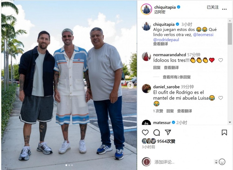 塔皮亚社媒晒出与梅西、德保罗的合照,调侃:“这两个家伙在搞什么名堂😂😂很高兴再次见到你们。”