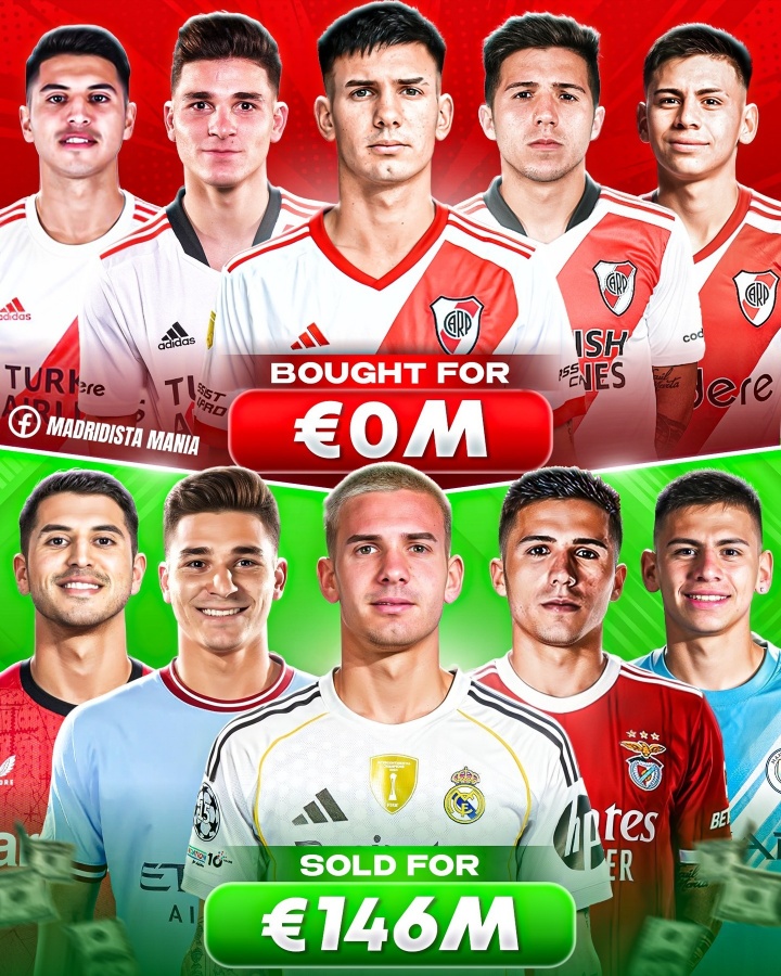 10月11日讯 阿尔瓦雷斯、恩佐、马斯坦托诺、埃切维里和帕拉西奥斯均出自河床青训,他们总计为河床带来了1.46亿欧的转会费。